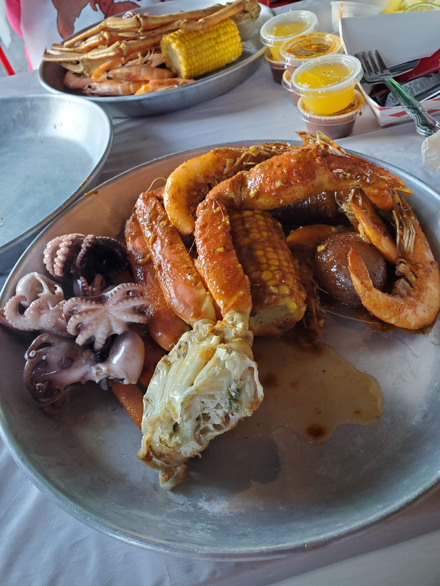 Read moreI was excited to eat here. I hadn't been to a place that had pan roasts since I left Vegas. We ordered headless shrimp and a pan roast. The shrimp in a bag were big, which was great, but they were not deveined, and the sauce had spice (we got the Kazaam or something like that), but not much flavor compared to Boiling Crab or Hot and Juicy. We were not offered anything to help it either. I saw other tables with cups of butter and lemons, so I asked for those.... Still not great flavor. When the pan roast came, it was brown, not orange. I asked the waitress why, and she said it's because I got the gumbo, not the pan roast. I explained that would never happen, because I never eat gumbo. She said that's what I was pointing at, then went to get the menu to show me where the gumbo was. I reiterated that regardless of where she saw me pointing, I would never order gumbo and came here specifically for the Pan Roast. She took the gumbo, and came back with a new bowl about 10-15 minutes later. It was ok. The lobster was as chewy as bubble gum, there wasn't a lot of flavor, but it was edible overall. It didn't help that the waitress blamed her mistake on me, as it made the rest of the meal uncomfortable, and she never apologized for the error or the extra time that we sat there with nothing...