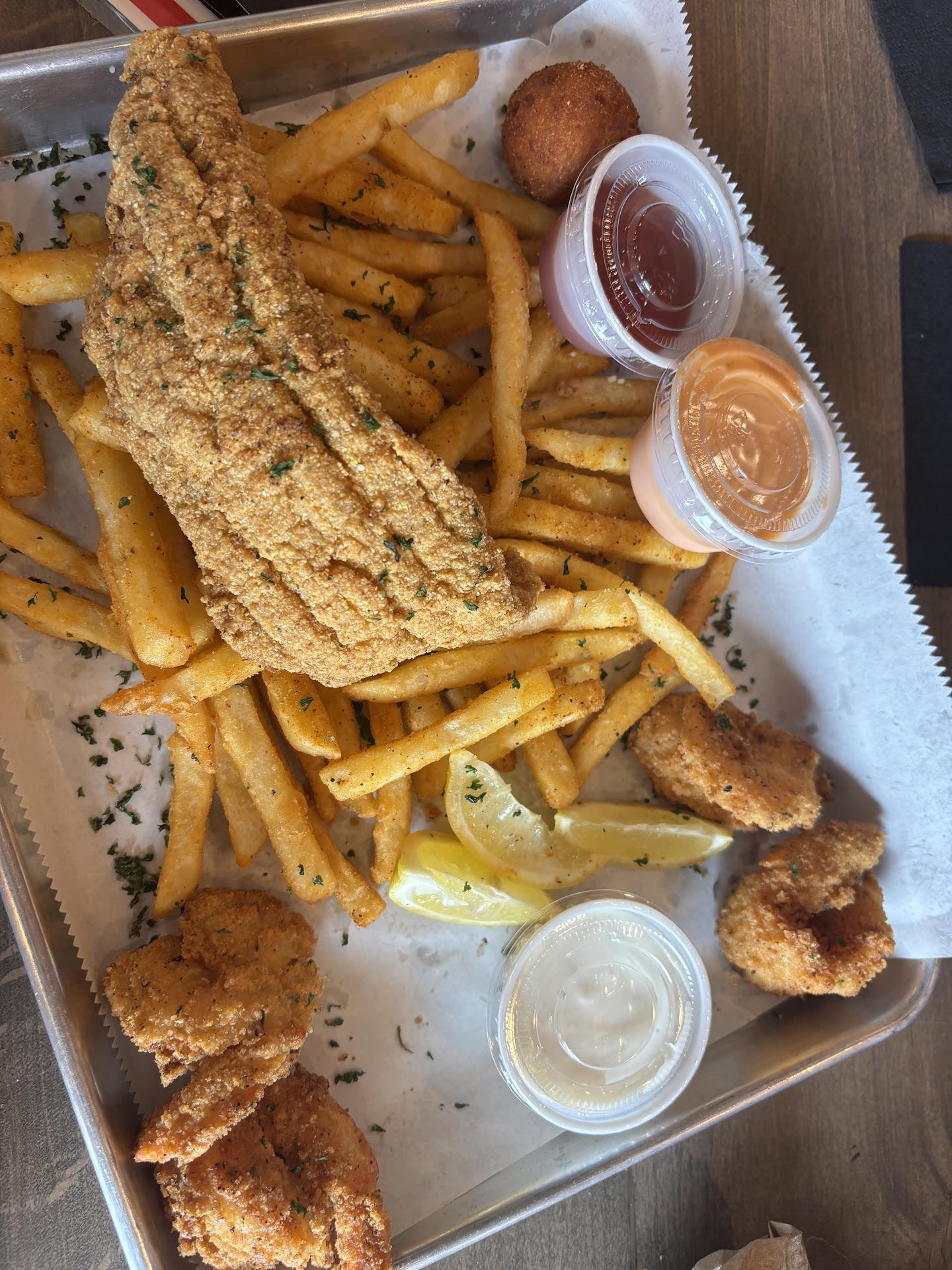 Visited on 5/31, Went with a party of 24, called ahead for reservations. Only had a few tables when we were sat. Took an hour and a half for everyone to get their food, we kept being told its being worked on. I was one of the first to order but the next to last to get my plate which was a catfish poboy....took almost 30 mins to figure out the tickets, and after all that fish was burnt, no flavor on it, no flavor on the tenders. Only thing that was good was the fries and espresso martini. In the end with only a 15% discount, our bill was $170 for 5 people, with gratuity. Which would be ok but I didn't eat half my food, no salt, and my plate was in front of me at 9:25pm, we sat down at 8:15pm. As a GM, I would have been required to comp anything that took over 20 mins, (Gus's Fried Chicken FTW/Dallas), and would have been on my line cooks behind about it. But there was no sense of urgency from the cooks to the manager, server tried her best, but if they don't cook the food then they can't serve it. Other tables got their food and left that came in 40 mins after we did, no excuse. Tickets must be cooked first come, first serve, this was a disappointment as the one in Dallas was so good we chose to try the new one in FTW. Never again, now I understand they are new, but the Mgr should have been at the expo, pushing these cooks, no accountability! Lmk if y'all need a new one, I'd be glad to...