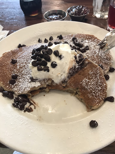 I came here by myself Sunday morning. I ordered a vanilla caramel latte and orange juice to start. The latte was DELICIOUS. The orange juice was good too. I think I got the bottom of the orange juice bottle bc it was so much pulp that it kept clogging my straw, but I personally really like pulp so it didn't bother me like it would most other people. I ordered the specialty apple pancake thing. I was told it would take about 30 minutes to come out. It took about 20. I did not like that thing. It was literally scrambled eggs with cinnamon apple slices in a bread bowl. I took two small bites and couldn't stomach it. I can't eat straight eggs. If it was an actual custard, it could have been really good, but it was straight scrambled eggs with whatever syrup they put on it. Not what I was expecting at all. I told this to my waitress and she gave me a confused look. Some people can't control their faces and she is obviously one of them lol. I also ordered a side of chicken sausage and a side of homestyle potatoes. The chicken sausage was cold. The potatoes were fine. I ordered the banana pecan pancakes in place of the sugared scrambled eggs. MUCH better. They were so so so good. I mean I would return just for them. The restaurant seemed clean. I didn't see a bunch of dust gathered around the exposed pipes above. There wasn't that smell of old gunked up grease and sugar. It didn't smell like cleaning products either. The chef did bring out my 2nd pancakes. I will give them another shot bc those banana pancakes...