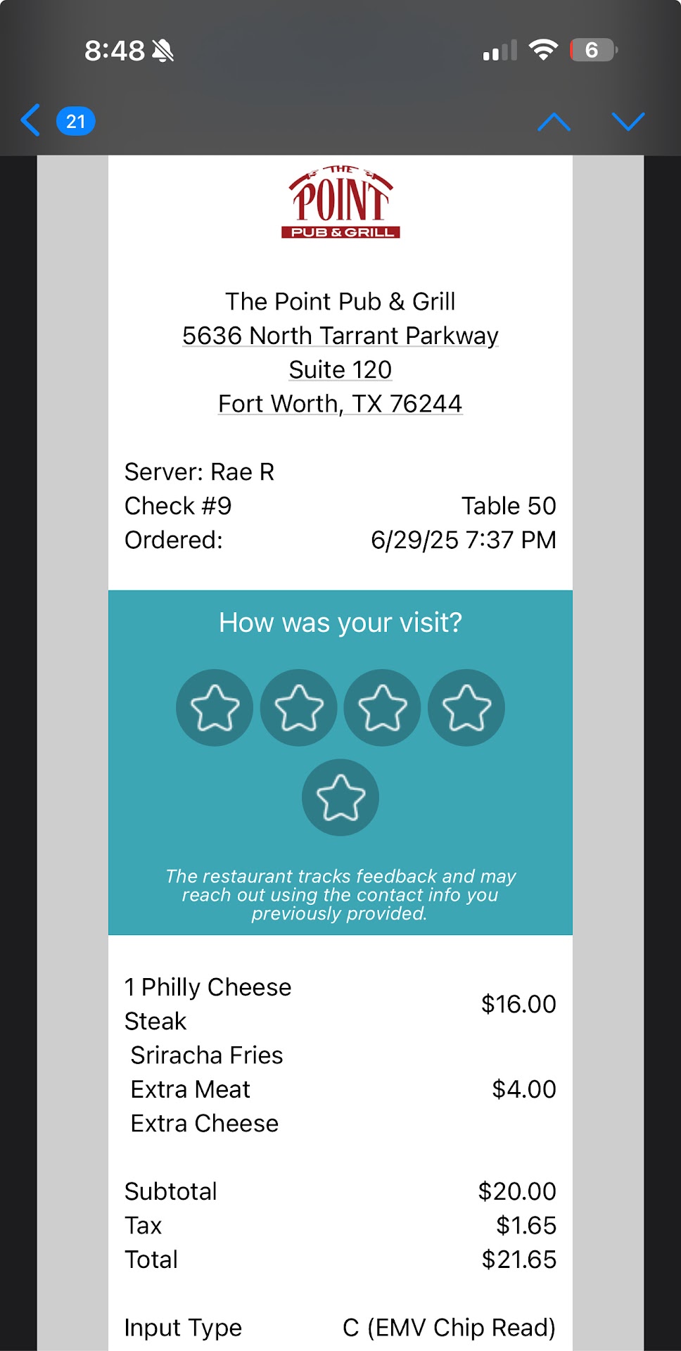 I told them I think they may have mixed up the order. I opened the to go box and showed the server/person I spoke with over the phone. She immediately got defensive and told me, āI didnāt mixed up the order, you ordered a cheesesteak with onions, extra meat and extra provolone cheeseā, then told me thatās what I got. I told her this isnāt a cheesesteak, itās literally a burger patty, with what I mentioned above. The cook was nearby and said I got a cheesesteak, what I ordered. Then asked me, ādo you know what a cheesesteak is?ā I told him a sandwich with thinly sliced/shaved steak and cheese. He said well, thatās how they taught me how to make it. Then he said, āwell you screwed things up when you asked for extra meat and extra cheeseā. Iām like all that means is adding additional thinly sliced/shaved steak and extra provolone cheese. The server then said she couldnāt refund me and couldnāt pull up my order, although she just read me my order, but her manager will be in tomorrow and I can ask him. Terrible experience. Iām never ordering...