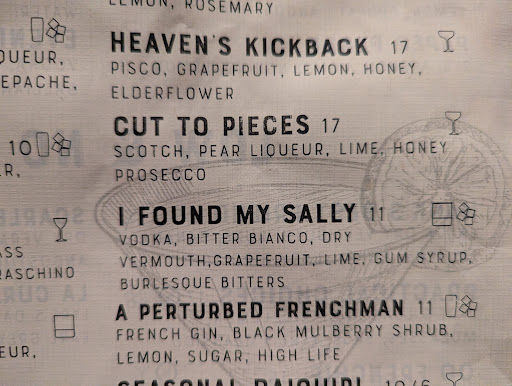 The bartenders were great. We had a large group playing a board game and they stopped by our table several times to refill waters and ask for our orders. My second drink was off the menu and had grapefruit juice. Still, the mariner was my favorite.