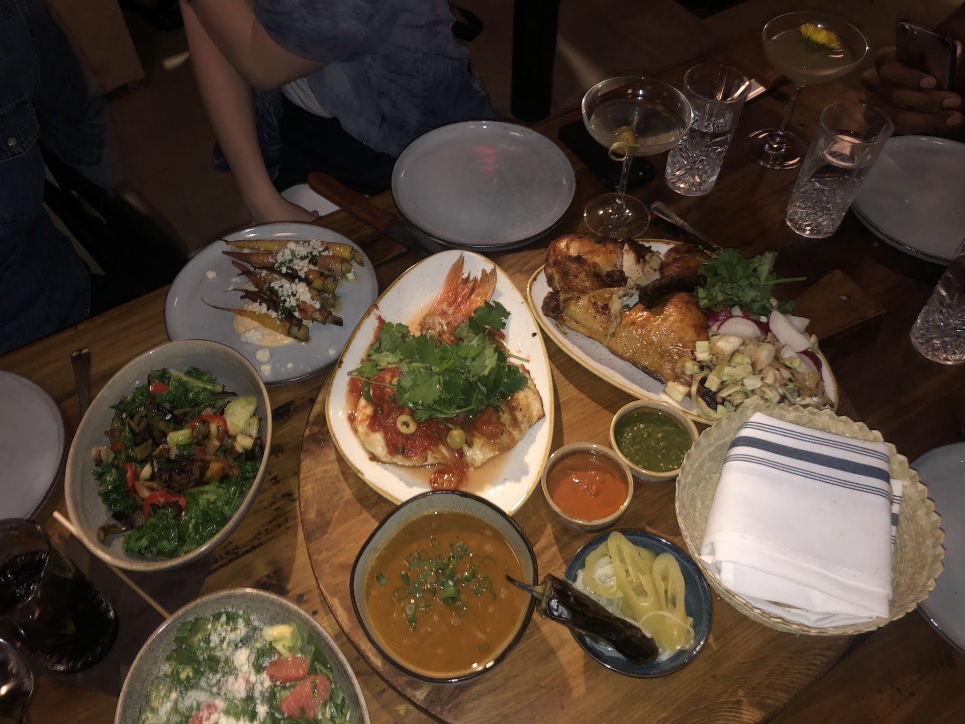 Food: I've been here for both dinner and brunch. I like Tinie's bc it's a good place to share things if that's your jam. For apps I recommend the potato taquitos, the trio of guac, and the empanadas! The zanahorias (carrots) are my favorite side dish.