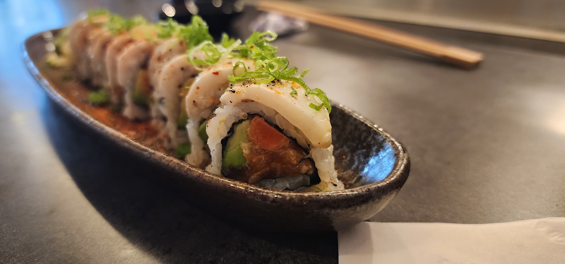 The place kind of reminds me of some of the modern restaurants in Japan that repurpose old houses, so its def a vibe! I strongly recommend coming here early, I came around 1 and it was packed, and the parking is a bit small. I sat at the sushi bar, which is kind of in a corner away from everyone so it could be kind of a romantic or a nice quiet place to eat but when I sat down at first I felt kind of hidden away 😅.