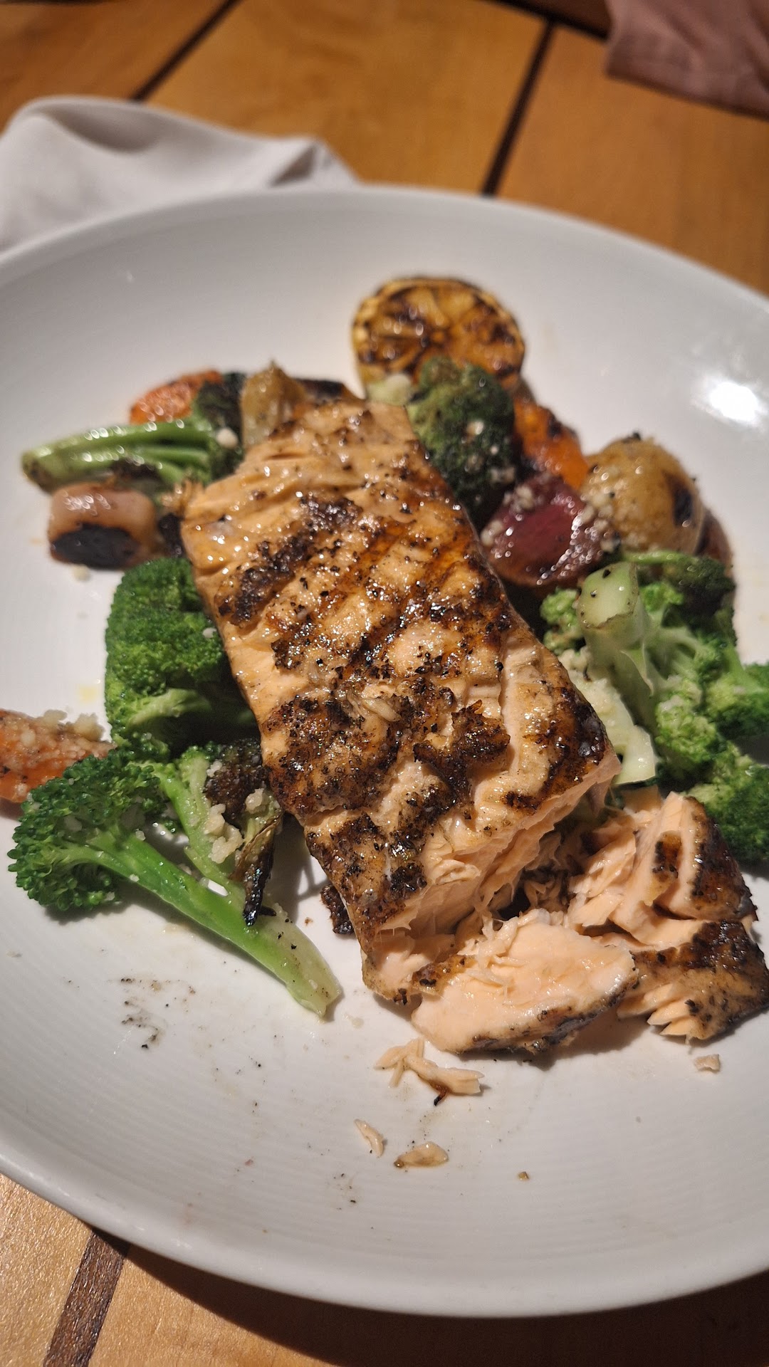 We received our food and as I bit into my salmon, mashed potatoes and spinach I noticed a sour milk taste. I initially thought it was me and tried again, but it continued. I ate the salmon and left the rest. I notified the server politely that I think something is a bit spoiled in it. He returned asking if I had ever eaten there before. Then he proceeded to inform me it must be the lemon. Lemon and soured milk are very different tastes.