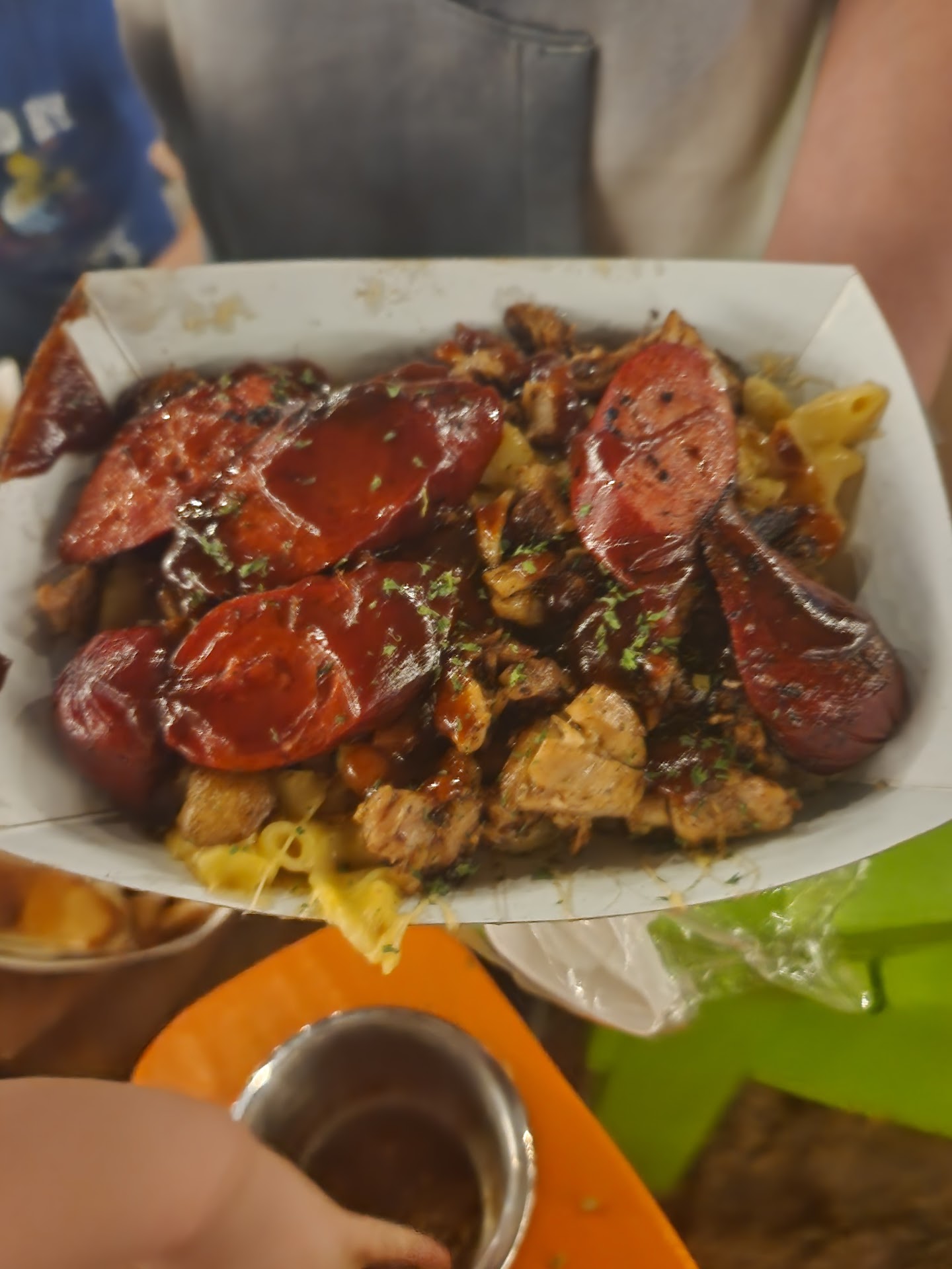 We divided and conquered at 630p for food. BBQ place was out of everything but a Mac and chz with chicken and sausage ( 2 of them was $35). 50 minutes later daughter was able to pay $85 for 5 grilled cheese and 5 French fries. My son ordered 1 serving of chicken empanadas for $14. The food took 90 minutes to get grilled cheese, french fries and empanadas. It took (i timed it) 46.5 minutes to get the two mac and chz with sausage and chicken. Yes, it did come hot. While we were waiting the 90 minutes I ordered 1 Coke $3(to refill the kids), a different mixed drink $9.00(iced Pina colada basically) and a vodka shot $7.00...I dont drink, but MAYBE once a year. Honestly vodka was glorified rubbing alcohol. Pina colada had flavor....after the first half of water. It was about 75 degrees outside. The second order was $26 after tip.