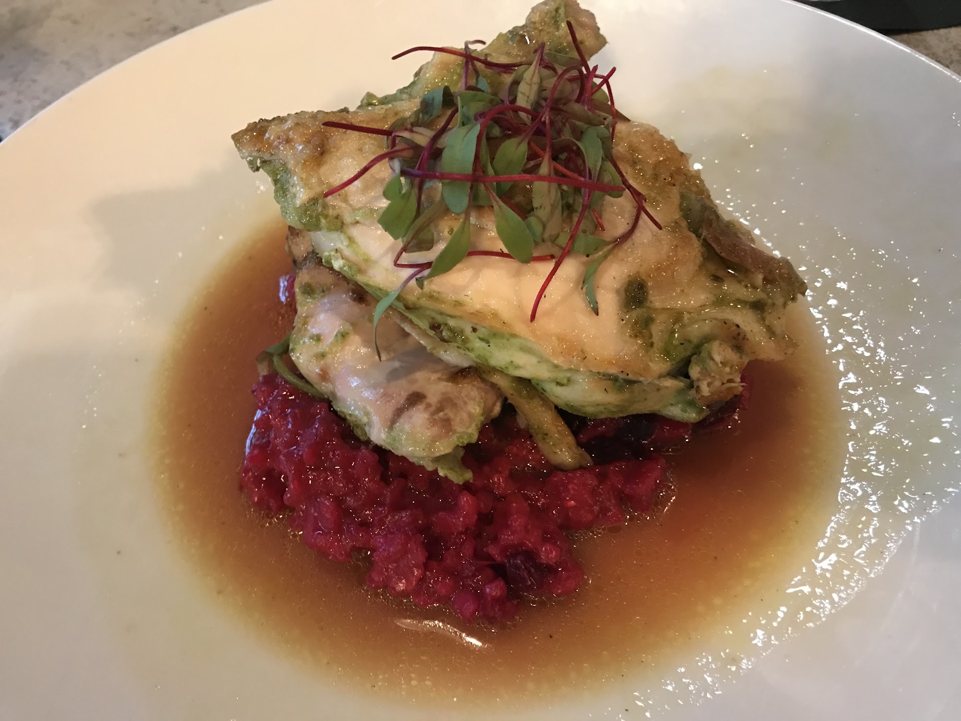 We order the Shaved Brussel sprouts salad which had dried cherries, pumpkin seed, Gorgonzola, Prosciutto and a Champagne vinaigrette salad dressing. The top of the salad was good but the bottom was not dressed at all. It became very dry and hard to eat. We only ate half.