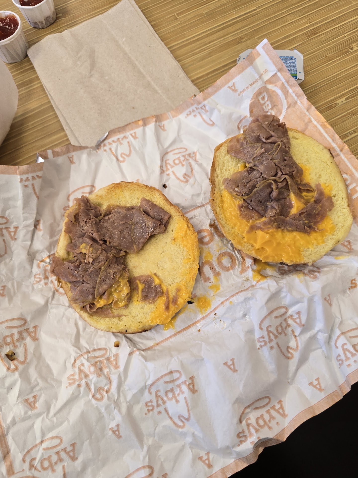 Read moreSo let me start by saying I was a "Certified Unit Trainer" for Arby's(Crescent Springs location) owned by RMI from 2007-2010. I try to be understanding when I receive poor service, with that being said this was by far the worst experience I have ever had with a fast food restaurant. I ordered my meal off the Arby's app and was informed the food would be ready in less than ten minutes. I drive and get there about 15 minutes later. My food is not in the "pick up" shelf area. I am forced to wait in the very long line to speak to anybody. After an additional 15 minutes I speak to the cashier and tells me "Hold on its coming up". These things unfortunately happen so I continue to wait People who ordered after me are getting food served to them while I still wait. The cashier/food runner finial asks me what I order I began to tell him when he cuts me off and says "Can you just get your phone out??". I am very frustrated at this point but continue to wait. The cashier calls to the back line for my food where they say "It is already up!". I should note they had a total of 6 employees working in the restaurant which is a little short in my experience for a lunch rust but does not justify the wait times. They had 2 people on the back line, one cashier, one food runner and one drive thru worker. The manager seemed more with keeping his flat bill had straight then working the backline. My food has been sitting on that counter with no heat lamp for at least 30 minutes. The bad has it's sticker/seal torn open and is wide open. He finally gives me the food in this crinkled open bag. The jalapeño poppers are room temperature but it appears the rest of my food is in the bag. At this point I just need to get back to work after this almost 45 minute experience. I get back and open the sand which that is wrapped and labeled as a double roast beef(what I ordered) and its some type of hamburger drenched in some type of orange sauce. This was completely unacceptable and I will NEVER return to a RMI...