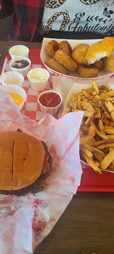 Read moreThis was a takeout order so I can't speak to the atmosphere. This time I got a bacon double deluxe cheeseburger. My son got a deluxe cheeseburger. We got an order of garlic fries to share. And we both got chocolate shakes. I burgers were delicious. I recommend the shakes but they aren't listed in the options for recommendations. The garlic fries were okay. We couldn't taste the garlic and as usual, the fries were definitely not crispy, much less extra crispy like I always request. I still ate a few and they were "okay" with the thousand island to dip them in. My son got to eat most of them. My shake was fantastic. I always order extra extra chocolatey and it was definitely that. I assume that my son's was good since it was gone...