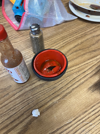The food ranked really low as well; we had the choriqueso which was not in fact, queso, but seemingly a block of cheese that was melted in the microwave topped with a little bit of meat that solidified almost as soon as it hit our table and was impossible to dip in. My two-year-old also managed to find a hair in her rice which we pulled out right in front of the staff and they did nothing about it. How are things were burned or obviously made in the microwave rather than being cooked fresh. Rice and beans were devoid of flavor. My friend had barria sauce with a quesadilla and somehow half of the sauce came out of the cup and under the plate. We discovered that the cup had a big hole in the bottom (pictured here) which we surmised came from microwaving the cup because how would they have moved a cup full of sauce with a big hole in the bottom? Also, one of the few Mexican restaurants where I wouldāve had to pay for additional baskets of chips and salsa, and those chips were stale and old for sure.