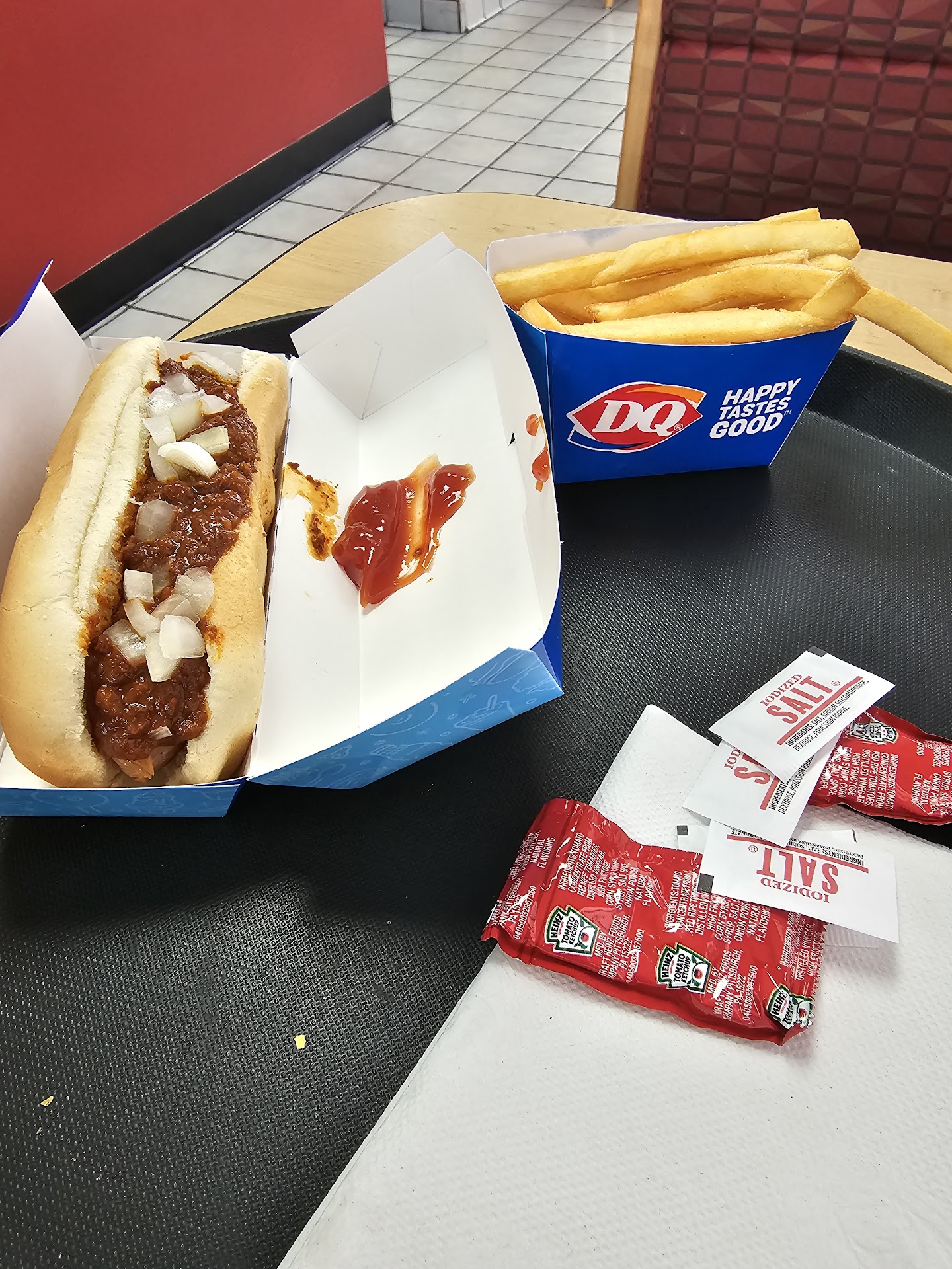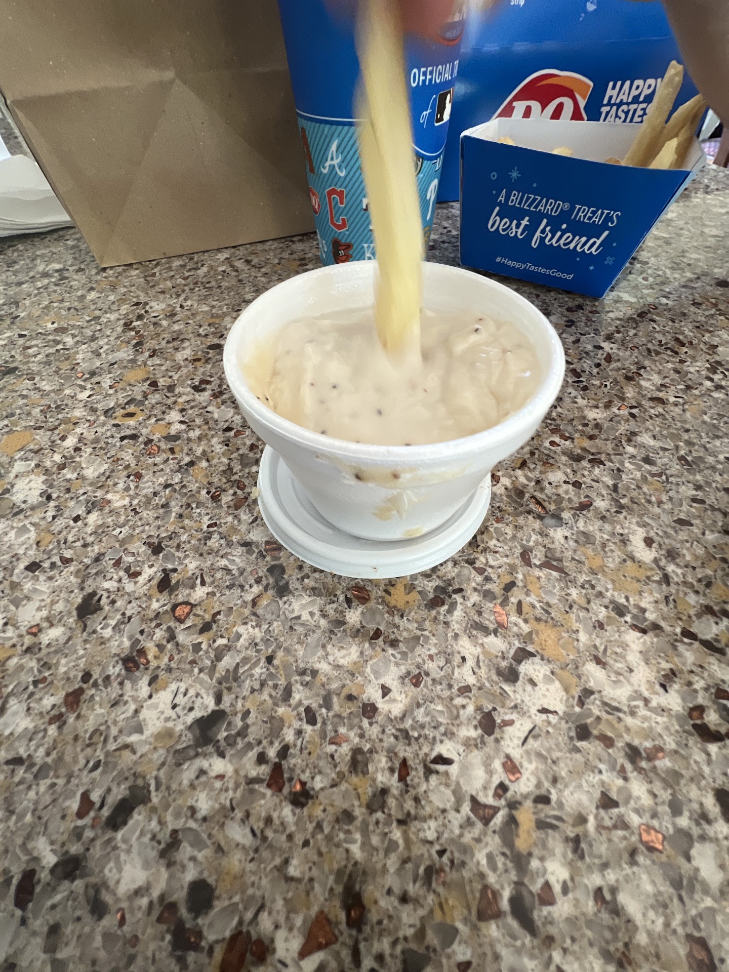 Read moreI went here for lunch break while I was at work out of town 3 weeks ago. It was such a terrible experience! The building was so miserable hot, I was dripping sweat by the time I got up to the front of the line to order. The store was broken and run down in appearance, besides the restroom having new appliances. I to wouldve given a lower score if possible because not only did we have to eat in our vehicle because there was NO AIR CONDITIONING in an ICE CREAM restaurant in the depths of a hot summer day but our blizzards were completely liquified and my partners blizzard wasnt even full after it melted and rose up some. Terrible experience. Idk what could fix that place but by the looks of it at least some air conditioning to keep the customers, employees, and ice cream...