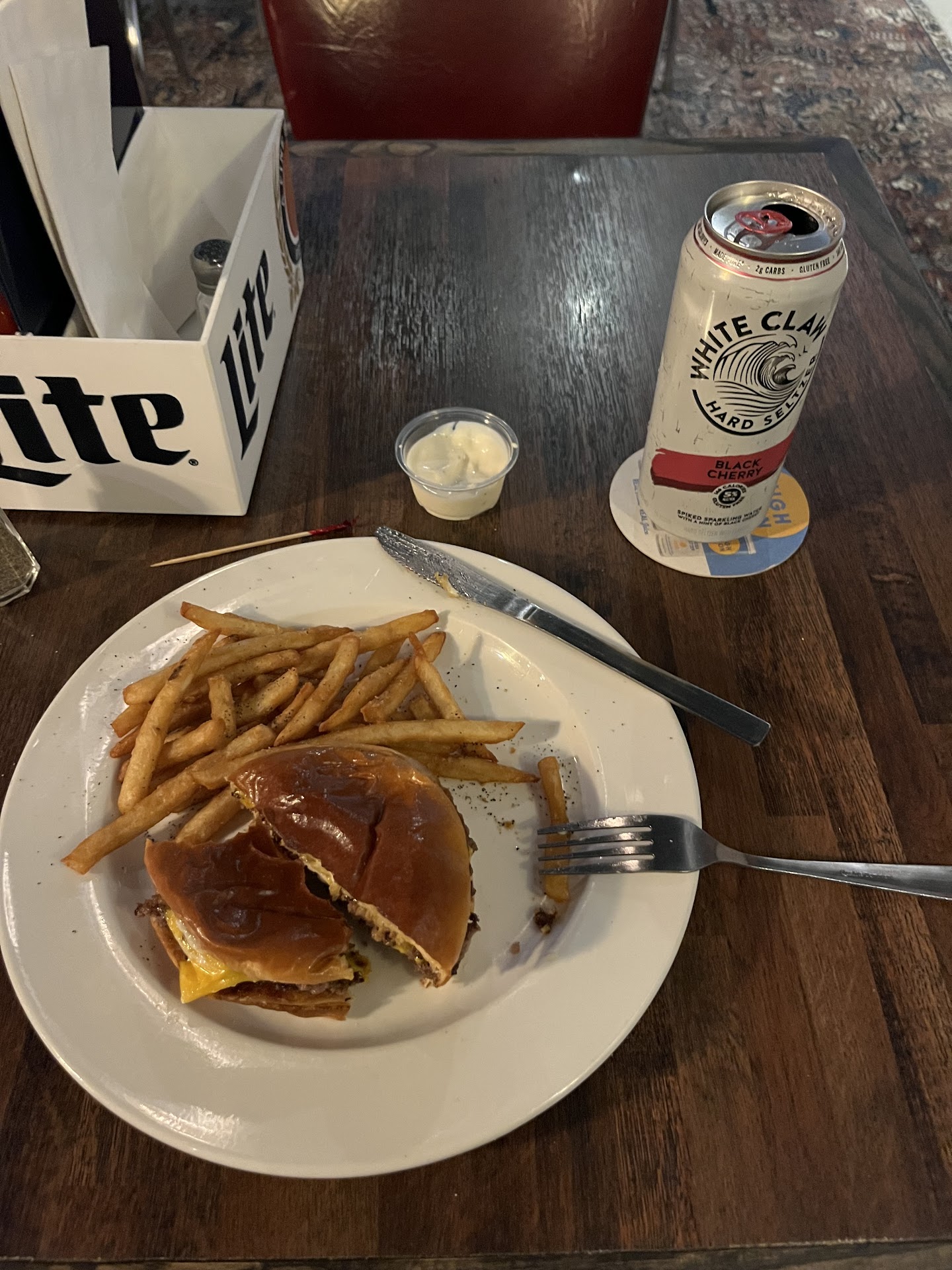 Update to first review. We visited again as we said we would. Much better this time. We both ordered the smash burger and fries. Very good burgers we both got a beer(s) as opposed to cocktails and much better. Service was actually better as well of speed of service. Will definitely be back now that we know what to order.