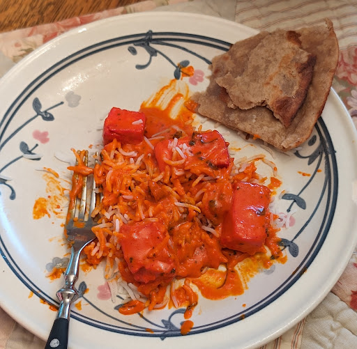 When we arrived home, we took out our meals and were more than satisfied by the amount of food we were given. We had a large portion of the mild Chicken Tikka Masala, which was very pleasing, and consisted of bite-sized, tender chicken breast smothered in a tomato and onion sauce, infused with cumin, coriander, ginger, and fenugreek.