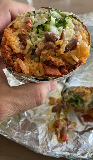 I’m a big fan of the al pastor burrito. It’s massive and is filled with the meat of your choice, rice beans, lettuce, cheese, sour cream, and cilantro. Most people could probably make 2 meals out of it, but it’s so delicious and I have zero control. I also suggest ordering the Mexican hotdog. It’s way out there in left field with the ingredients, but it’s next level.