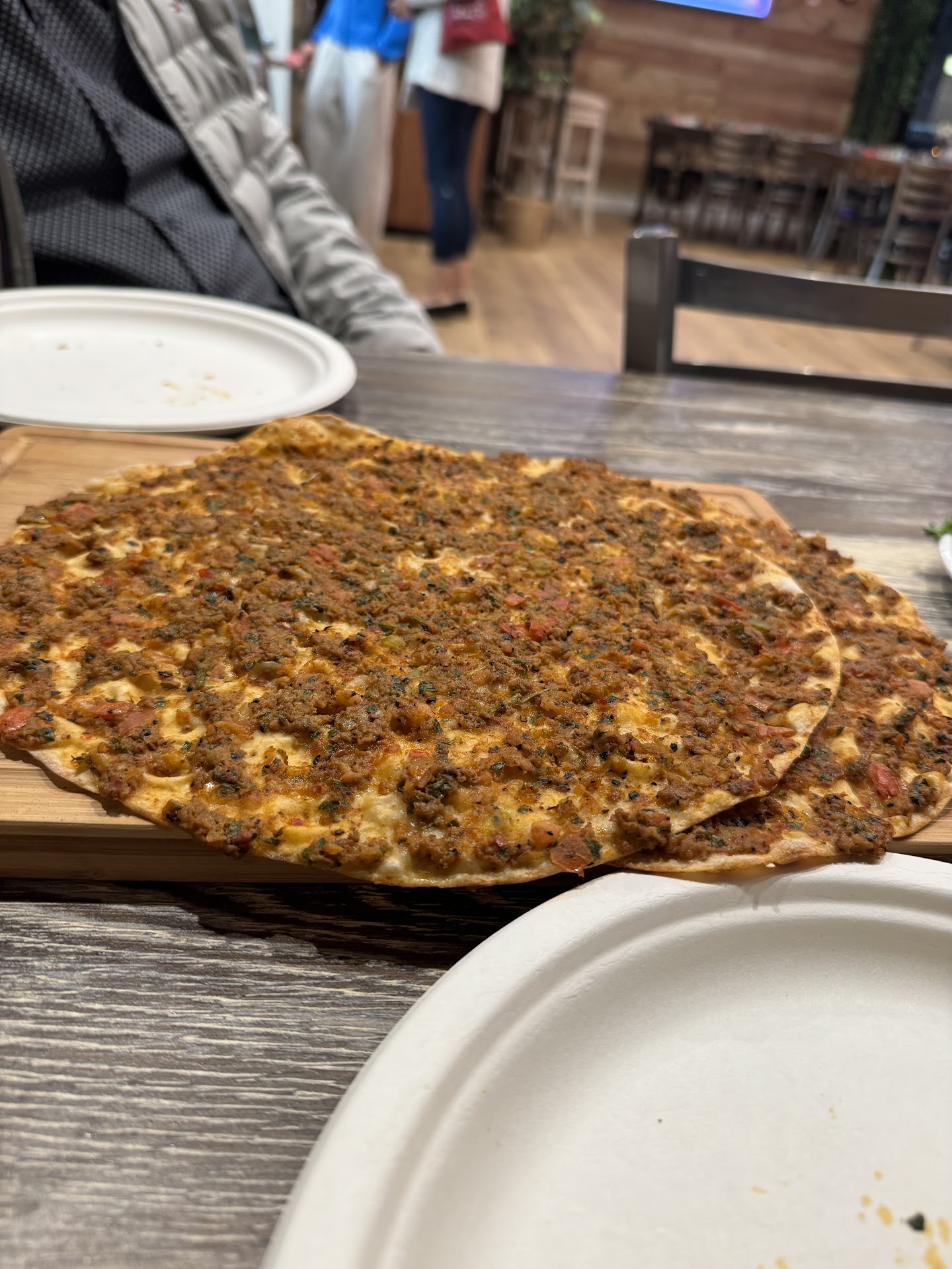 Read moreI love the lahmacun, it is just the way I like it. The dough is thin and delicate, tasty with the right amount meat mixture. We tried both spicy and regular, spicy is nothing to be scared, slightly spicy but delicious. I would order either of them next time. So this is a must We ordered iskender kabob, famous gyro dish of Turkey. It is the best in Southern California, probably in entire west coast actually. So I would recommend it as well. We also got rice pudding which was less successful. Taste wise pretty good however it was a bit runny like it needed more starch for viscosity. Pudding and lahmajun were served with disposable utensils, which made the experience tiny bit low. I’m sure as they get more established, they will address it. I understand how difficult it should be to open a food business especially in the beginning. I wish them well.