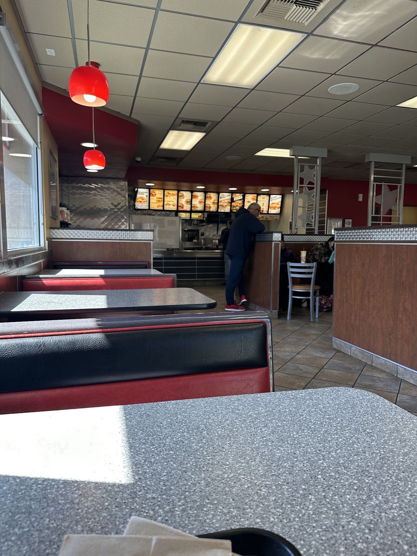 Read moreOne of the worst locations! The place looked clean but if you look closer, the tables are not wiped clean, the soda station has trash by it, they give you a miniscule amount of napkins and condiments (ketchup specifically). The bathroom (men's) smelled like dried pee. If you look at the toilet bowl, it looks like it hasn't been cleaned in a while. Oh and yeah, there is no toilet paper in the dispenser, safe to bring your own!