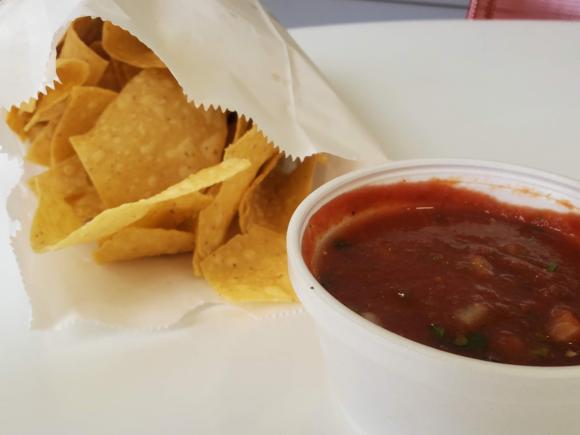 I ordered a shredded beef crunch taco, with rice and beans, a side of chips and salsa, and a small guac.