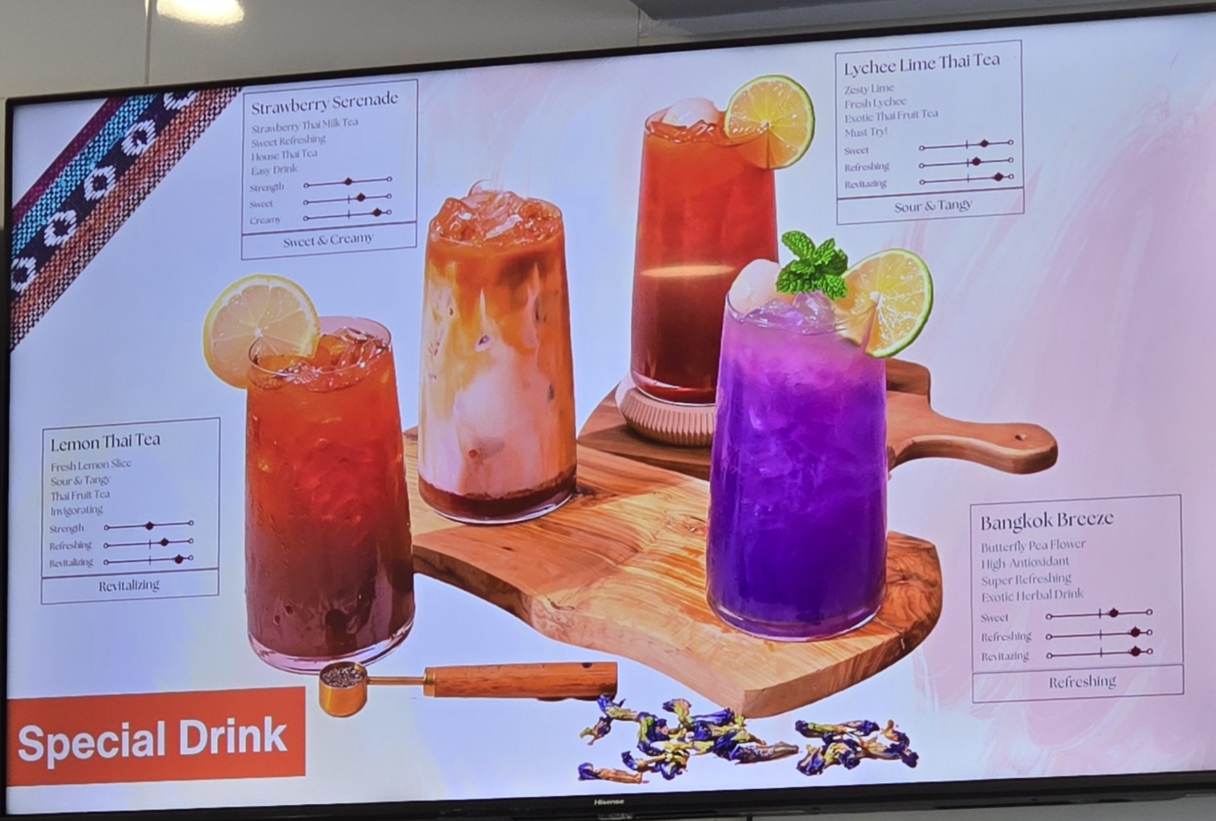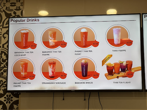 Offers more than just Thai tea drinks. Love the different dessert options.