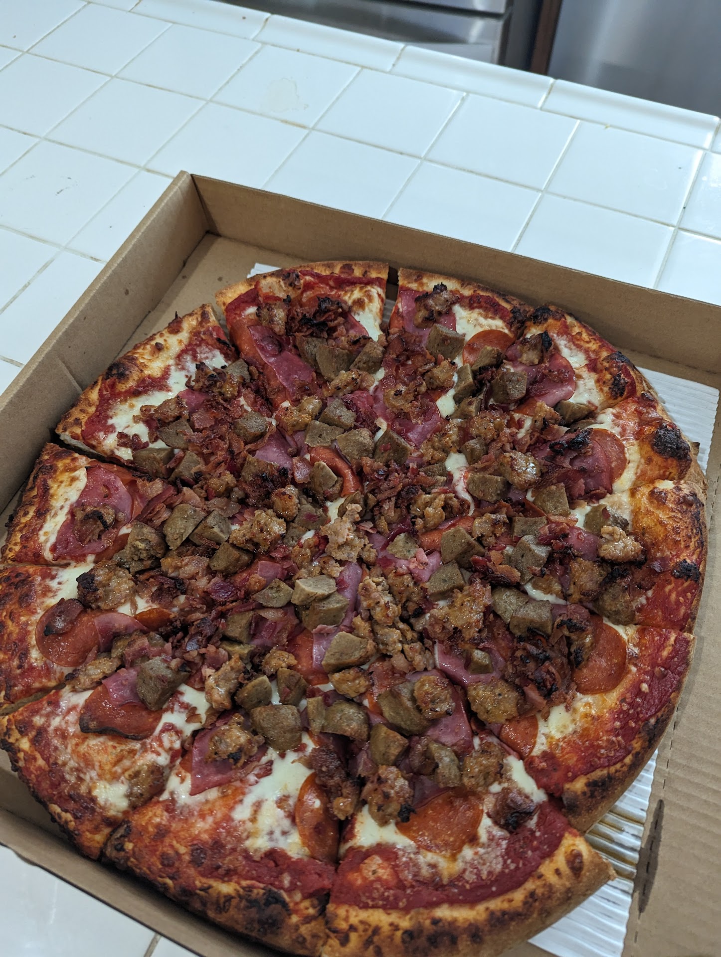 Read moreUgh.... First the driver delivers half of our order with half of someone else's order. We ordered 2 small pizzas, large chicken caesar salad and 2 large meatballs. We received our two pizzas with someone else's small pizza and mozzarella sticks. We called the store, told them what happened. The other lady missing her food had already called. So they will send a salad and meatballs (and yes, we offered to pay for the extra pizza and mozzarella sticks). 45 minutes later the salad arrives with NO dressing. And 8 tiny...
