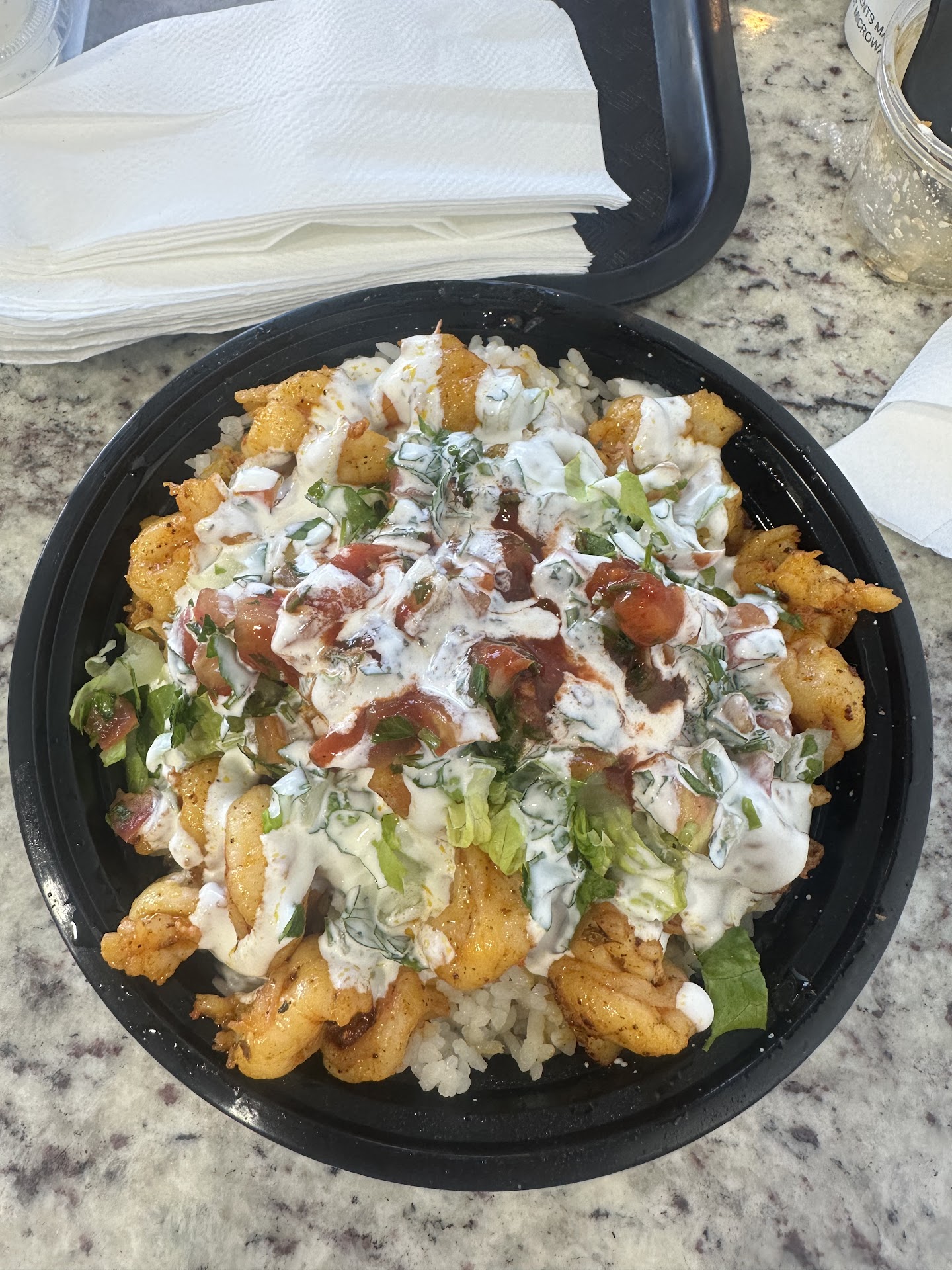We ended up getting the shrimp bowl and the beef bowl and wow the amount of serving was an ample portion. Better servings than pre-chipotle times I’d say(iykyk). The bowls were packed with so many great and different flavors. I am a sauce girl so I had to drench my bowl with the garlic and hot sauce they provided. 🤤