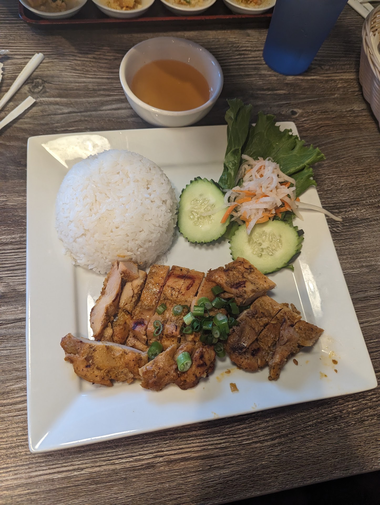 I highly recommend Hue Oi Vietnamese Cuisine and I'll tell you why. I am of VN descent and live in Houston, a city with no shortage of authentic VN restaurants. In this visit to Hue Oi, I ordered six dishes: H14 Banh Uot Thit Nuong; C8 Com Bo Luc Lac; A7 Goi Ga Bop; H13 Nem Lui; B4 Bun Tom Thit Nuong; C3 Com Suon Nuong; along with A3 Cha Gio appetizer & C7 Com Chien Thap Cam for the kids. They were all excellent and authentic with the correct corresponding sauces to each dish which is key to Vietnamese cooking. You should try ANY menu item that appeals to your sensibility. A review of HUE OI is incomplete, however, without a comment about how the restaurant is presented for a deeper appreciation.
