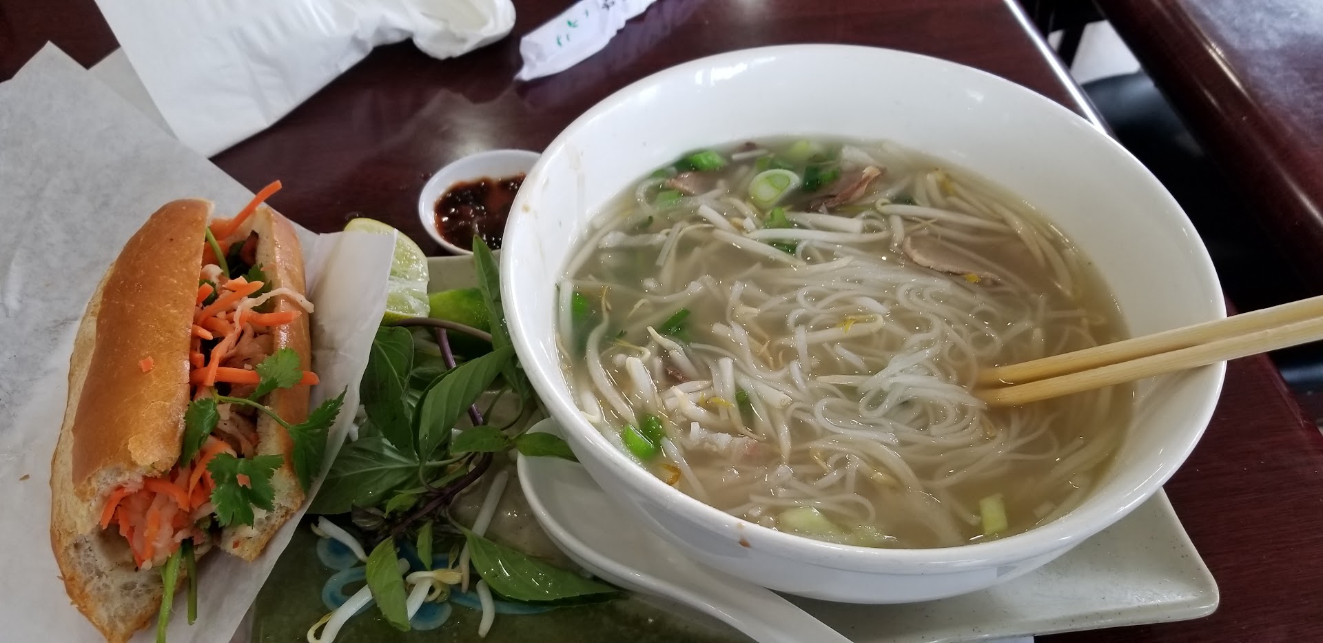 Read moreThe prices were amazing but the service was absolutely terrible. My girlfriend and I sat down and we got our waters and menus and the waiter walked away. Three other couples came in after us. By the time we even got our order taken (which by the way they ran out of ALL the sandwiches at this place, never heard of a restaurant running out of Banh Mi) anyway by now two of the other couples received their food, more people came in by now and here we are still waiting for food while three other tables got their food, a few minutes later my girlfriend gets her food and here we go a few more minutes go by and other tables get their food (time and communication lacked at this place, it was a complete cluster&%%$) so finally after 5 minutes after my girlfriend getting her food I finally get up and ask where mine is thinking maybe he thought I meant cancel my order because they didn't have the sandwiches, finally after about 15 minutes of waiting, and if you go to Pho frequently you know it usually only takes 3-5 minutes tops (IF you are ordering Pho) no matter how packed the place is. The point being if you want good food for a cheap price along with some terrible service this...