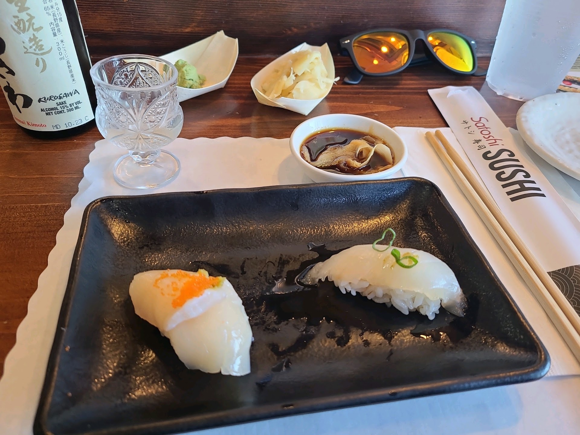 This time, I was solo, so I ordered the Scallops and Golden eye snapper sushi. The sushi chef notified me that they were out of the golden eye and offered a replacement of black snapper, which she said was similar to red snapper. She said If I knew I'd like red snapper, the black would be good. I appreciate the recommendation and the distinction between the snappers. I do enjoy all snapper, so the replacement offered was perfect.
