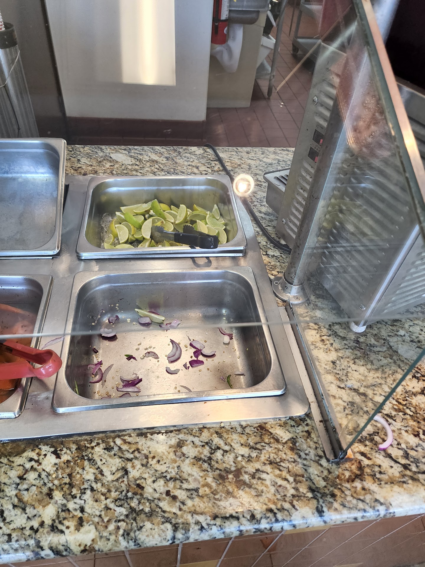 All tables bolted to the ground, very sturdy, no wobbly tables. New granite counter tops, very clean. Everything organized, and topped off. Feels very welcoming.