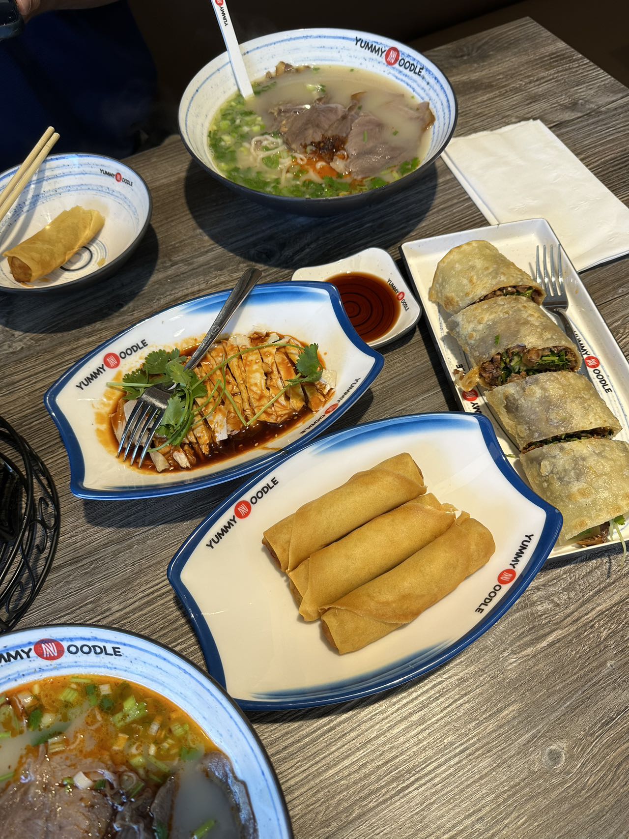 We ordered: Lan Zhou noodle soup - 5 stars, I can eat this bowl on a daily basis. Steamed chicken - LOVED the sauce, sweet and spicy, but not too spicy, perfectly balanced. Veggie spring rolls - Bigger than most eggrolls you get at other restaurants, very flavorful and came out steaming hot. Beef wrap - OMG!!! the first beef wrap I ordered where they gave more beef rather than spring onions and cilantro. Xiaolongbao - Goodbye DTF, hello Yummy Noodle. Finally, I can get my high quality XLB while the kids enjoy a hearty bowl of noodles!!!