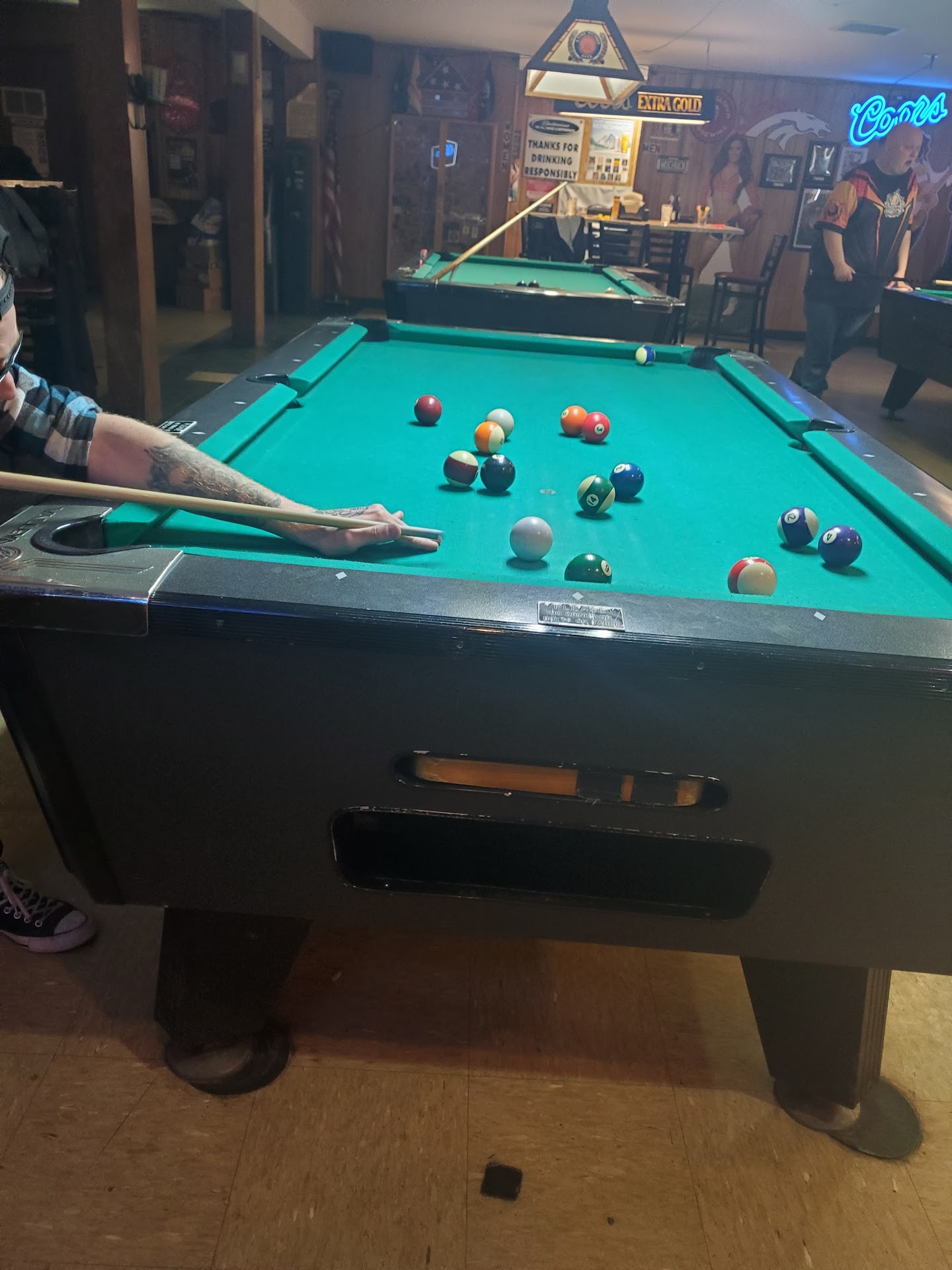 This was the first time I've been here. I live Probably 5 or 6 blocks away. Went in had a good time. Ordered pizza about an hour and 20 mins ago from All Star Pizza in the same center and walked over to pick it up. When I got back inside the bar I was told it was a health code that I could no longer patronize the bar because I bought food some place else. The people I was with needed sobering up and the little old man that was a veteran needed sobering up too "someone we didn't really know". I figured it was a good idea to put some food on the table and get these guys home. It is the main concern not letting people drive drunk from the bar! That's when you can be held liable "the business selling the alcohol" Letting people eat pizza to sober up is a very good idea, what exactly is wrong here? All my biker friends patronize this place. If outside food was not allowed we should have been told. I will tell my friends that go here often what happened. That was rotten making us leave because we had food from the pizza place next door. You got the business for the alcohol and we paid our bill. What is the big idea here? I'll tell you what the idea is...because we didn't buy the food there they got mad and blamed it on the owner. There was nothing wrong! Time to change your rules. If there's an accident for making people leave because of some food, you better believe some one, one day, is going to hold you accountable! By the way I had to leave one star for the review! Also like to add if the food is a health code then why is it that we can order pizza at the corner pocket and they are perfectly fine with it? Kindly answer that...