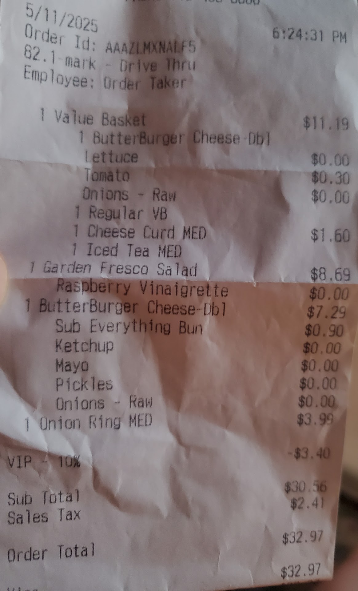 Upon arriving at the Fountain, Colorado Culver's we placed our order at the drive-thru and we were served by Emily (possibly spelled Emilie).. at the very start, we weren't greeted with anything other than "what would you like to order?" Once we began giving our order, after every item ordered, there was a long pause before being asked typcal follow on questions like, "would you like that in a basket, what would you like to drink, etc.." after taking the order for the 1st basket and one order of chicken tenders no one appeared to be responding any longer... after a minute or so pause, I said, "hello, can you still hear me?" To which there was another 20-30 second pause and I repeated the initial ask of "can you hear us?" Emily replied with a tone, "pull forward and we'll take your order at the window." Upon reaching the window it appeared that she might have been on her cellphone (not entirely sure), however, I requested to speak to a manager about her tone/attitude and poor service.. manager Ish came to the window and took our order.. due to her poor behavior towards us at the order screen outside the order that was placed with Ish (likely to no fault of his own) was incorrect (Wisconsin dbl was given instead of the cheese double) and for the 1st time in my experience eating at this restaurant not only was ghe order incorrect but it was even burnt and heavily seasoned with salt.. it was also very apparent that Emily's attitude wasn't exclusive towards us but also extended to all of the nearby employees and even the manager Ish... Not entirely sure if this is a 1 off experience, but if this experience repeats itself ir is any indicator of the buisness culture shifting at Culver's then I'll spend my money elsewhere; $30 for a few small meals isn't worth it if you get poor customer service and the veterans/active military and civilian customer base in the area doesn't deserve the...