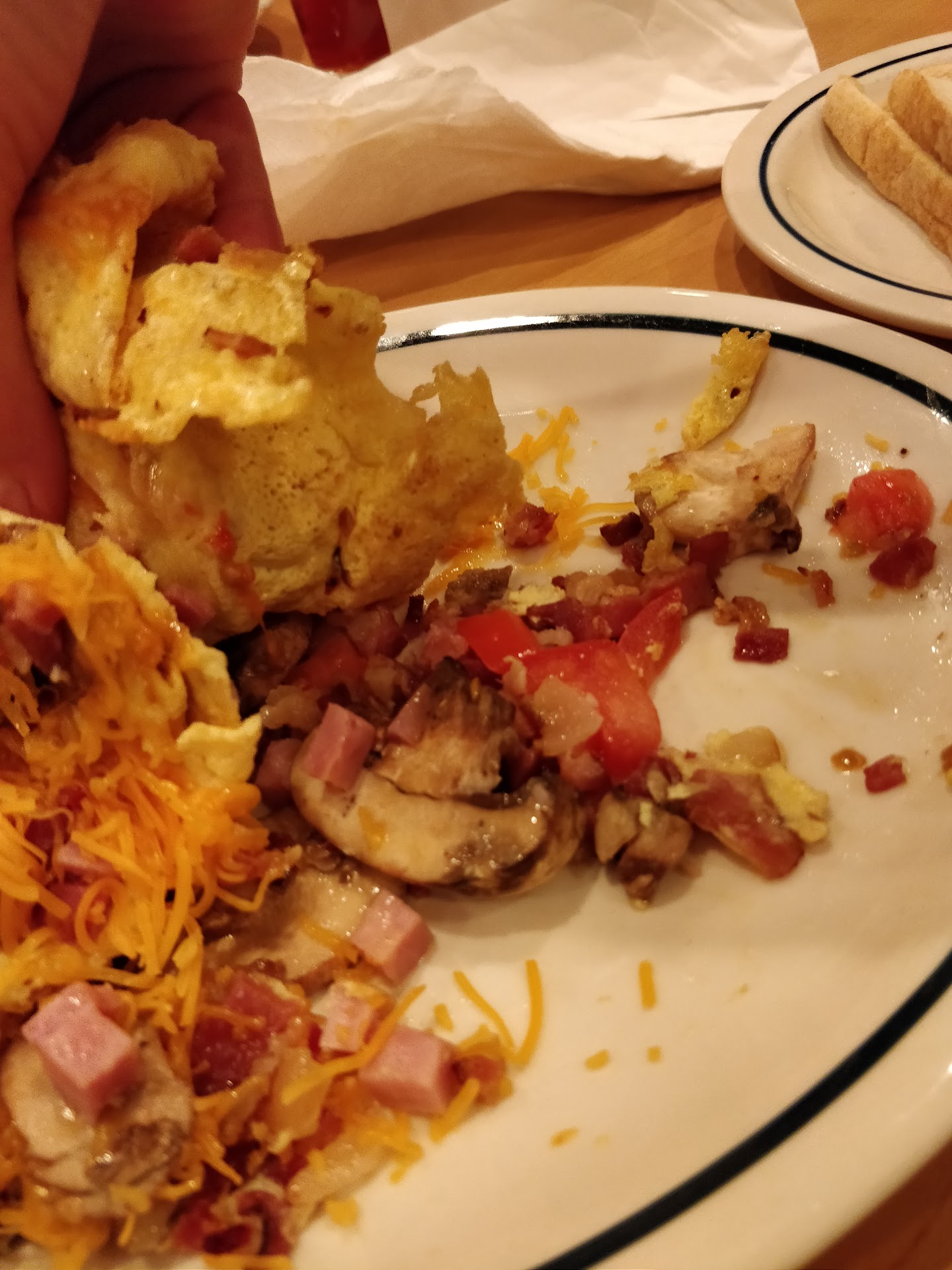 Went there for dinner, 2 adults and 1 child. Not too busy at the time we showed up, the manager is the one that sat us and told us the waiter will be with us shortly. And that was the last time I saw the manager, i guess he got off after he sat us. There seemed to be only 3 waiter/staff there dealing with the everyone in the place. From taking orders, cleaning tables, sitting people, printing out checks, brining food to the tables and drinks. It was a mess and they really need to hire more people, its not fair to the wait staff. We waiting a very long time to get our food, which was a bowl of mac and cheese and 2 omelets. Its been a while since I have eaten a omelet, so I was confused when I started eating mine. Did the meaning of an omelet change? Because what I got was a egg that was folded 3 times over and everything I thought went inside the omelet was just messily thrown on top of the egg, it was more like scrabbled eggs without the scrabble. The toast that came with my wife's "omelet" was hard as a rock and nasty. I had to wait over 10 minutes after asking for a refill for my soda.