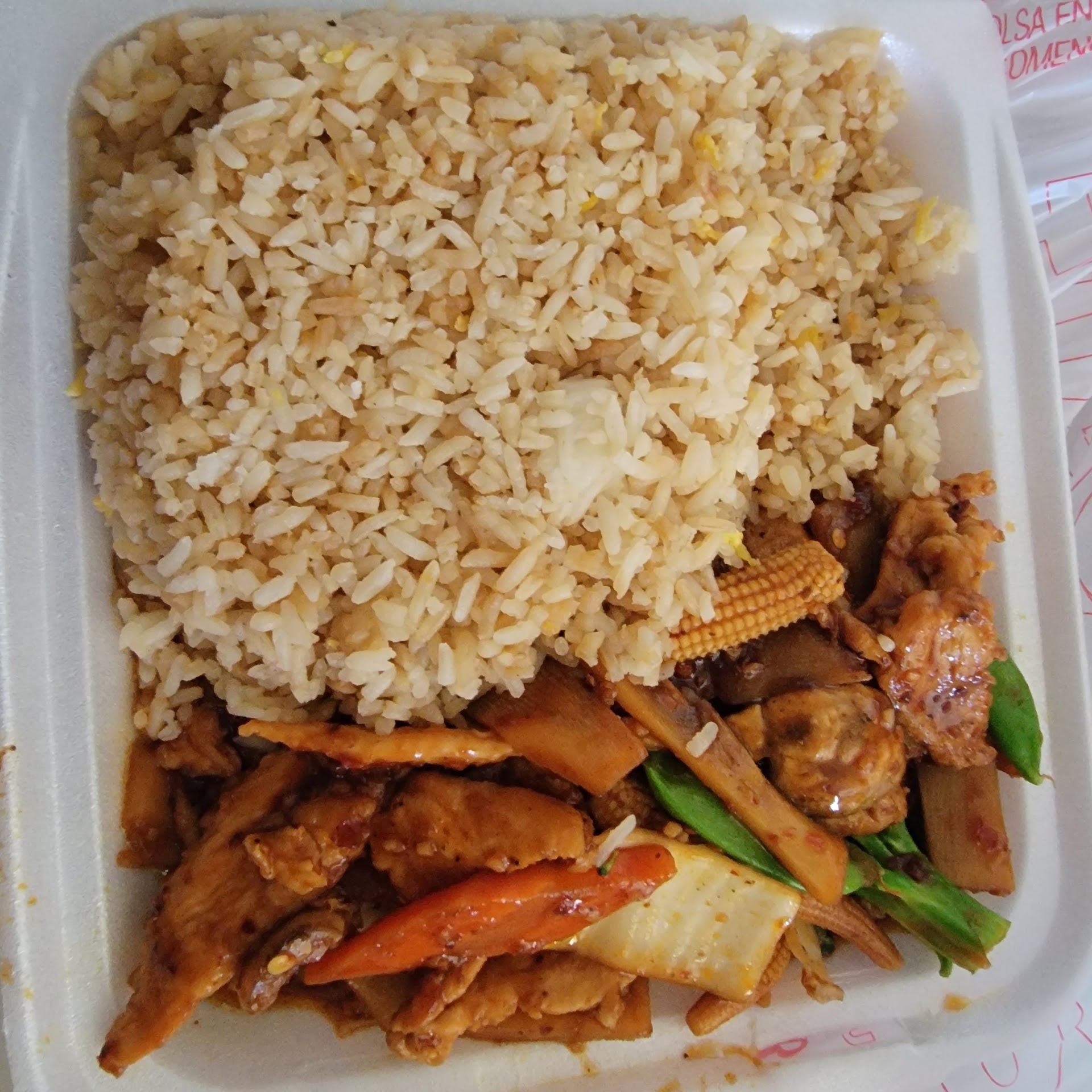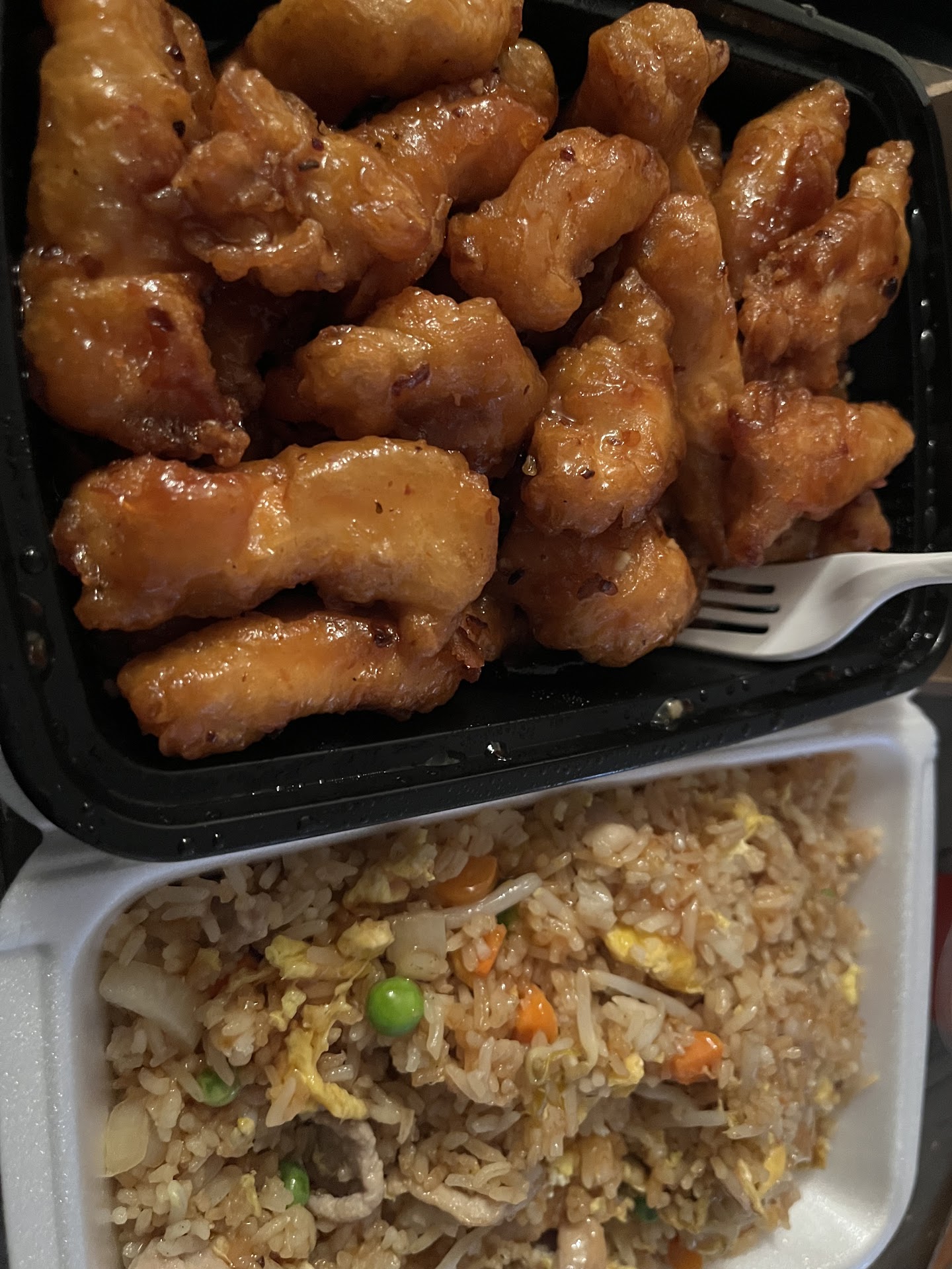 I’ve ate at many Chinese Places and gotten this each and every time I’ve had some horrible Experiences but nothing like this one. First off the Portion of the Sweet and sour sauce is no where near enough to compensate with amount of chicken you get. The sauce is literally the whole point of the meal and the sauce it self was tasteless the chicken was rubbery and dry and at point delicious and the pork fried rice wasn’t even fried it looked like it was cooked in mop water along with the pork as well DISGUSTING
