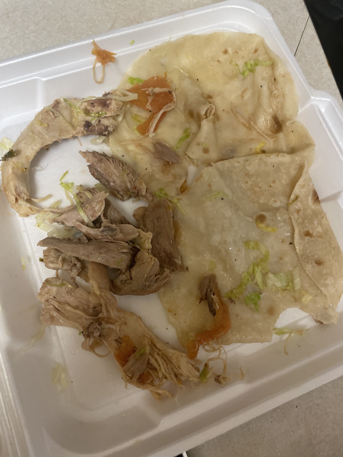 One complaint that I have about the tacos is that they heat up the corn tortillas with oil. This makes the tortillas very greasy. See my photo.