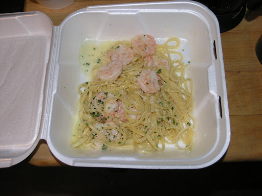 The portions of our meals after a large order of calamari was a bit too much for us to finish, so we requested to-go boxes. When our waitress delivered our boxes she offered dessert, which we politely declined. But who asks for a to-go box and eats dessert, we're full.