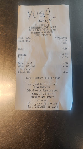 Read moreI ordered $500 worth of catering for two separate Team Builders at work. I was charged, food was picked up and consumed. They did not provide receipts to my colleagues that picked up the orders. When I called to ask for a reprint so that I could properly expense the Manager told me he could not reprint because it was not same day (lie, from my understanding they use Aloha and aloha does offer the function to look for orders and reprint.) When I contacted chat support I was bounced around from bot to agent back to bot back to agent so so forth. That was all day one, Day two I attempted chat again and was bounced around for an hour. I finally got an agent who helped and said they sent the receipts to my email but i did not receive, when I confirmed the email with her she sent me back to bot. I drove to the store and spoke to the same manager who told me he could not help, he double checked and returned to tell me he could not help me and directed me to the catering phone number. I called and they were no help. They advised that they could not locate my order, I provided Name, Phone Number, Email, Location, Dates, charge amounts and last 4 of card. They still could not locate my order even after telling them that I see the recent orders in my account but needed a breakdown. I never received a confirmation email( email is correct in account) the restaurant and manager were no help, Customer care was no help. its 2024 and Chipotle is a large chain. Unacceptable, will never order from them again!! Rant...