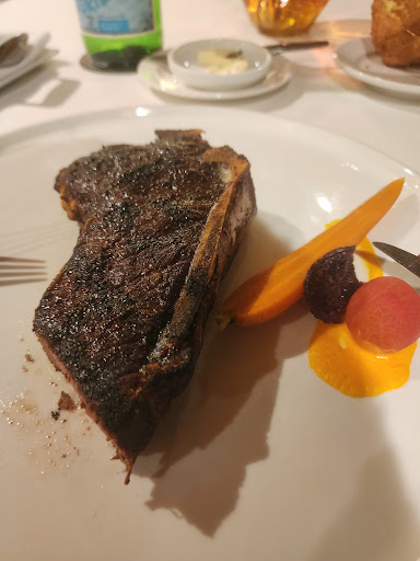 As for the cuisine, it was a testament to the mastery of the culinary arts. I began with a lobster bisque—an elegantly portioned serving that was rich, velvety, and deeply flavorful, offering a delightful prelude to what was to come. For my entrée, I indulged in a top sirloin aged steak, and it was nothing short of extraordinary. The steak was flawlessly prepared, exuding a depth of flavor and succulence that underscored the meticulous aging and expert craftsmanship behind it. Complementing my meal were a perfectly balanced martini and a beautifully curated pinot noir, each elevating the flavors of the evening with their own distinct nuances.
