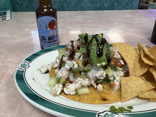 Lovely blue paint,like the sea...had a cup of shrimp&octopus cocktail omg delicious 14bucks but worth it,saw them making icecream&salty fruit cups the size of DQ large blizzards for $5+ they came out prettier than the picture! Tacos are 2.50, burritos are 6...they have cups of Mexican creamed corn like on all the Facebook videos will try that next..might be pricey for a casual place but...