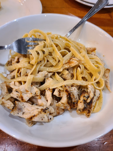 My partner and I arrived around 7:45 pm, an hour and 15 minutes before closing time. I will say that we chose this restaurant over nearby Bottega Michelangelo because this restaurant closed later. This was a mistake. We were greeted by a hostess who simply said "Hello". No welcoming feeling at all. She led us to a booth (your booth seating is incredibly uncomfortable) and gave us menus and that was basically it. There were several unbussed tables around us and only 3 occupied tables inside. Soon after, James approached the table and got our drink orders. Returned with the drinks and took our food order. Fine enough. James returned about 20 minutes later to confirm our order. Um, what? Was the order not already input? I couldn't remember what I ordered so I asked him to bring me a menu to jog my memory. He was so tongue-tied trying to explain to me what happened that I couldn't understand him. Something about a button for one item being close to another. I work in hospitality and this excuse doesn't make sense to me, but ok. Our order comes and the food looks great. Tastes pretty great, too (FettucineFalfredo with sausage and Meatball Ricotta, if you're wondering). Sadly, that's the only positive part of the experience.