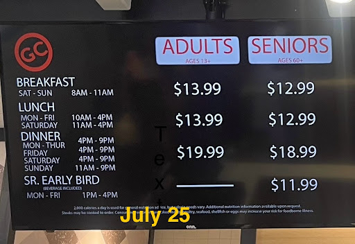 Ā Ā Ā Read moreUsually I love Golden corral but since the new changes during this time of the pandemic their food quality I feel has gone down now when it comes to cleanliness it is definitely gone up and the employees that I ran into were very polite but they looked shorthanded like somebody was trying to save money on labor for profit but it look like they're running a skeleton crew and the employees were running around all over the place to cover all areas... If I had to guess I would say they were short at least six employees that they needed to properly run this restaurant... It was just kind of disappointing because I love coming there for the variety of different foods and plenty of it but even then it seems like they shortened the menu also... The last dinner I went to 3 weeks ago the price I paid was approximately $16.99 per person and if you bought a drink it was like $3.59 approximately... So all in all you're spending $21 to sit down and basically get a variety of different foods to eat which is kind of pricey especially in this area... All in all the visit was okay but until things change to the better or back to what it was I think I'm only going to visit maybe six or seven times a year until I see improvement with the food temp and more employees... Because honestly seeing all these workers just really hustling to get things done... It was actually giving me an anxiety attack and was not comfortable like it...