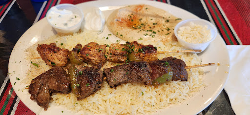 The atmosphere was very welcoming with a small traditional wicker style seating section, the decor was very welcoming. The standard dining seating was very clean as well. The waiter was very kind and respectful, he answered my vegan friends dietary questions. My other friend had a gyro plate and it looked really good, so now I def gotta come back and try their meat selections. The only perceivable downside I saw about this place was its location was a little odd being on the exterior of the mall, but the plus side is there is easy and plentiful parking.