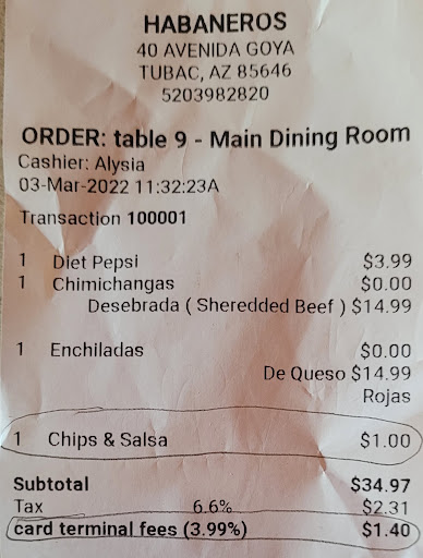 Read moreThe cheese enchiladas were perhaps the worst I've ever had. The tortillas were filled with Mozzarella (no, not even Queso Oaxaca). They were covered in the red sauce then covered with more Mozzarella and broiled to melt the cheese. The cheese on top had a lot of browning (too long under the broiler) and was beginning to separate (or protein/fat separation) and had brown/black spots all over it. The sauce was very unauthentic. It was basically slightly diluted canned tomato paste seasoned with a bit of commercial "chili powder". After delivering our food, our server didn't return until the meal was over. He wasn't overwhelmingly busy - we were there for lunch at about 11:20am and the place was pretty much empty. The final crowning blow was an unadvertised 3.99% fee added to our check for paying with a credit card. I'd be very embarrassed to run a restaurant serving such low quality food. We were left wondering how this place stays in business. Perhaps it's a front for money laundering? Go see for yourself if you must. My review is actually straight forward and honest - not...