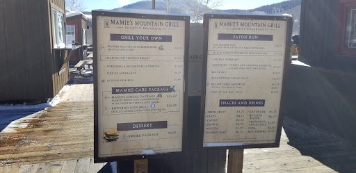 Awesome place to refuel on a bluebird day. Pd $18.35 for a cheeseburger, with pickles, lettuce, tomato and onion. Came with 2 slices of cheese (American, Swiss & cheddar are the options). Would highly recommend stopping here on a nice sunny day, grilling your burger, toasting that buttered bun and enjoying the view from up on the mountain. While Abasin's Black Mtn Lodge reins supreme as my favorite on - mountain lunch spot, Mamies is reminiscent of the same, and totally...