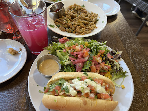 They have a great cocktail menu - I recommend the Prickly Pear Cosmo which was tart but good, they also have a Prickly Pear margarita which appeared to be quite popular. For food, they have some local specialties, we got the fried cactus with jalapeño ketchup and Sonoran dogs. All food was very good and I do HIGHLY recommend the Sonoran dog! It is a...