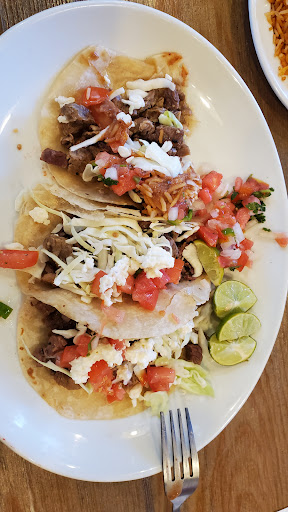 The tacos were ok, meat (carne asada) was a bit dry/bland. Even with all the cabbage, pico, queso and a squirt of line it was just ok. The meat lacked flavor. The meat almost disappeared as all the other garnishes overpowered the underflavored meat. Had the meat been a bit more seasoned and juicer those tacos would have been great. I hate to say the same went for the rice and beans. Rice was a bit dry and the beans were just ok.