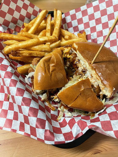 We have heard great things about their cheese cake and there have seen some Facebook post about stuff it burgers and their other company in some of the food fb groups in Kingman . The owner of the () business is making orders of holiday pies I don’t like how they don’t have a soda fountain or water cups it is still a small business so I do understand. It was so good I was unable to stop myself from eating it to take a picture of the meal . The building was clean and well lit and I love the whimsical style decor .