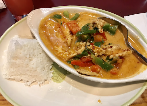 Read moreWonderful food! We stopped in after a long day of skiing and were delighted to be able to get seated at the only 2 person table left - it was packed on a Tuesday! Tons of people coming in for takeout and quite a wait for four person tables. The good news was that they were SUPER fast to turn food around once they took our order! We started with the coconut shrimp - it looked nothing like the menu but was just as delicious as we imagined! Served with Thai chili sauce (not the cream sauce the menu mentioned, which i prefer). I ordered the Panang Curry with chicken - my absolute favorite - and was thrilled to receive one of the most flavorful dishes ever! So creamy, sweet and spicy, and the perfect amount of meat, veggies and rice! My fiancé got the pad Thai chicken and was not disappointed either, although he wasn’t raving about it as much as i was with my curry! ;) We ordered Mai Tais and found them to be tolerable... didn’t quite taste like there was any rum in them, but let’s face it - we came for the food not the drinks! I think if they weren’t so busy, i might have asked for my favorite - Thai Iced Tea (spiked) :)
