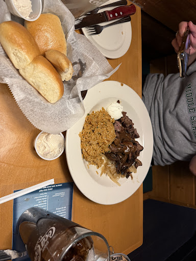 Food arrived and seemed decent enough. Steak was probably the best cook we've had ever and we've been here like 50 times. However, rolls still never came so when the manager stopped by I explained the situation. He stared at me dumbfounded like, "So what?". He then asks if we wanted more rolls. No buddy, I just wanted to tell you this story for my health. Yes, of course.