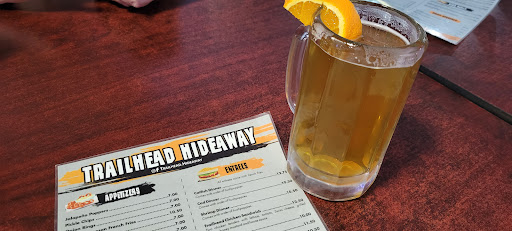 The Trailhead Hideaway Bar and Grill is conveniently located right at the turn-off to Mt Graham from Highway 191. A group of us stopped by after a long day of mountain biking on the freshly worked on trails on Mt Graham. The atmosphere is what you would expect for a bar and grill on the side of the highway. It looked well taken care of, and nothing stood out as being out of place or worn-out. There was a pool table, which we were told was free to use on Sunday. Our group took advantage of the pool table while we waited for our food. The menu was good and had the choices you would like. There were probably 10 plus draft beers to choose from, including a few good craft beers, which was a good surprise. I ordered a double cheese burger, and it came with some fresh cut frys. (Sorry, I forgot to get a picture of the burger) My wife ordered a grill cheese and a basket of fried mushrooms, which she said were very good. My hayz IPA beer came with an orange slice, which was different but I went with it and it was fine. The service was very good. She keep our waters and beers full and checked on us often. A small misunderstanding on our order between the waitress and the cook was quickly fixed within minutes. I could not ask for any more from our visit and look forward to visiting again on our next trip...
