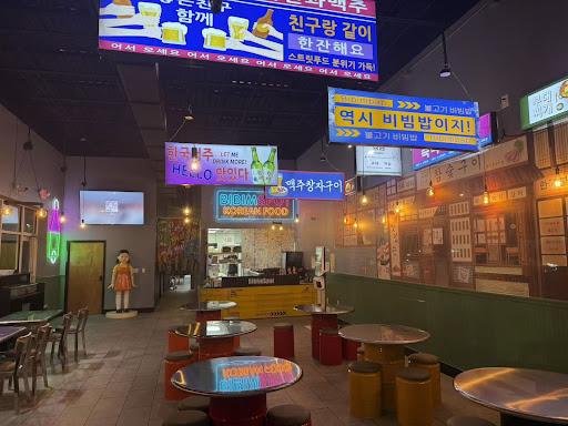 The bibimbop was delicious, full of flavor, the right amount if crunch and softness, the shrimp and egg were cooked to perfect. We ordered a Bulgolgi bowl and a garlic shrimp bowl with kimch and pumpkin porridge. Also ordered the deokbokki and it was so fresh and hot with the ooey-gooey cheese that melted into the sauce, making it a creamy savory bite each time. I'm not a huge kimchi fan but I'll say it wasn't spicy and it was a nice refresher between bites. The free water was a nice crisp freshness to have during the meal before I dug into my Matcha milk tea which was not overly sweet and comforting, my husband ordered a strawberry tea and it has a pungent jasmin flavor which was also super crisp and delightful. My husband and I REALLY liked the pmpkin porridge. I would literally like that as a boba becayse it's cool, light, and again just the right amount of sweet. K-Pop music, street food lights, and wallpaper design makes you feel like you're having a meal under the night sky in Korea with a very kind and attentive staff. I will definitely recommend and come back again!!! Thank you so much! Manh-eun chugboggwa gyeolsil issneun...