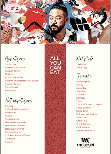 Read moreWas over in Davenport for the evening and was looking for an AYCE sushi restaurant. Google pointed us to Musashi, and it didnât disappoint! To be honest, we had never tried Brazilian sushi before. It was super unique and absolutely delicious. When we arrived, we were greeted by Lucas who escorted us to a table immediately. He informed us that the normal dinner prices are $40 per person. He took our drink orders and we put in some appetizers. Lucas was so warm and kind, a showed the utmost respect to his guests, pardoning himself whenever he walked up to the tables. The tuna tataki and salmon carpaccio was absolutely delicious, drizzled with what I believe to be ponzu sauce. We also each got an order of ceviche, which was citrusy and yummy. For our rolls, we ordered a Volcano Roll, Philadelphia Roll, a Spicy Tuna Roll, and a Dorito Roll. But by far, the absolute BEST roll we tried was the Picanha Roll. It comes with the most delicious fried crunchy garlic on top of it and I couldnât get enough! Highly recommend ordering it, even if you have to order it off the main menu. We ordered the guava cheese harumaki, and oh man it was good! I also suggest trying the old fashioned. It was perfect. If youâre looking for some different variety of sushi and interested in trying some Brazilian Japanese fusion, Musashi should be on your list of...